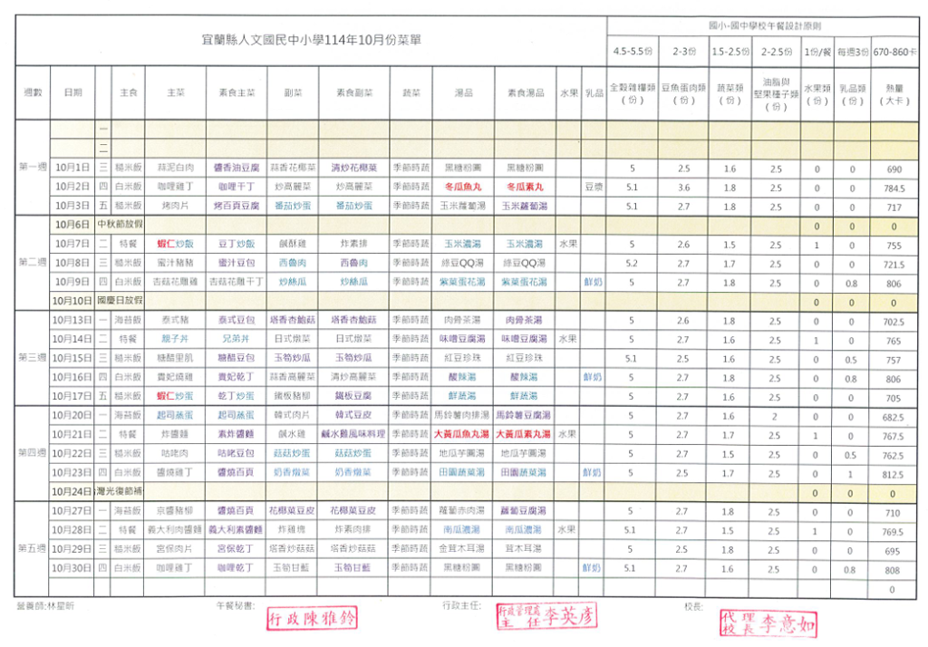 每月菜單